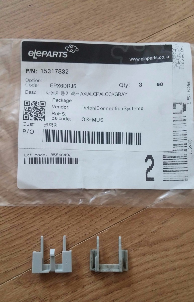 이 록킹 핀은 에어클리너에서 스로틀 바디로 연결된 주름관에 설치된 공기량측정센서(MAFS)에도 동일하게 사용된다. 가운데 고정용 핀이 부러졌다. 이 록킹 핀이 끼워진 커넥터 탈거는 반드시 이 록킹 핀부터 제거해야 된다. 이런 커넥터 탈거할 때 탈거 방법을 모르면 아주 애먹는다. 록킹 핀 위치가 아래쪽으로 향하고 있어서 잘 안 보여 탈거할 때 좀 짜증 난다.