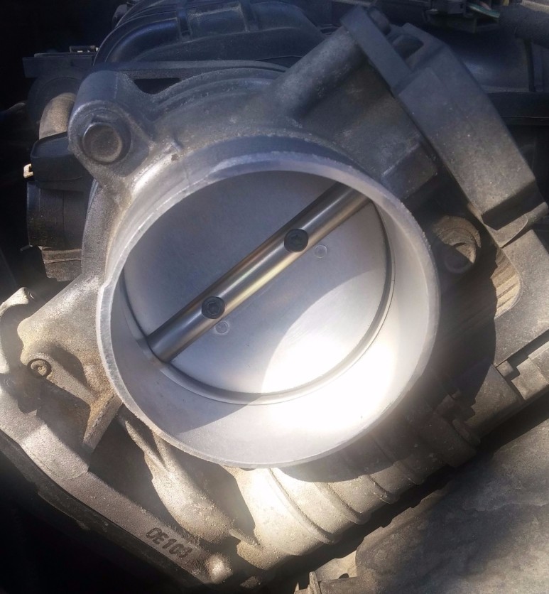 스로틀 바디 세척액을 수 차례 듬뿍 뿌려서 카본 검뎅이를 모두 제거. 세척액 뿌려주고 잘 안 닦이면 걸레나 칫솔로 문질러서 카본을 제거한다.
