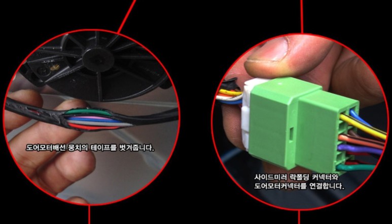 잭 바이 잭 타입으로 나온 제품이라 도어 트림 탈거하고 잭 끼워 주고 도어 록/언록 모터 배선 2가닥에 락폴딩에서 나온 배선 2개를 브릿지 시켜주면 되는 어렵지 않은 작업이다. 예전 제네시스 BH에는 잭 바이 잭 타입이 없어서 일일이 배선 10여 개를 다 연결해 주느라 시간 많이 소요되었었는데. 더군다나 제네 BH에는 좌/우 도어에 락폴딩 모듈을 각각 설치해야 좌/우 사이드미러에 락폴딩이 구현되는 방식이어서 돈도 2배, 시간도 2배가 걸렸었다.