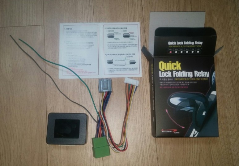 락폴딩을 설치해 보자. 락폴딩 제품은 여러 회사 제품이 있으니 알아서 적당한 놈으로 구입. 2만 원대임. 내가 구입한 제품은 A 작동 모드, B 작동 모드, C 작동 모드 이렇게 3가가 있는데 A모드는 키 ON/OFF 시에 언폴딩/폴딩이 되고, B모드는 리모컨으로 도어 열림/닫힘 시에 언폴딩/폴딩이 되며, C모드는 A/B 두 가지 모드가 모두 작동하는 모드이다. 내가 구입한 제품 이 외의 회사에서 나오는 제품들은 C모드는 없고 A 또는 B 모드로만 작동하게끔 구현되어 있어서 몇 천 원 더 비싼 C모드를 지원하는 제품으로 구입함.