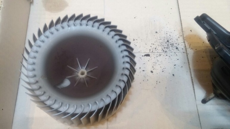 팬 고정 부위가 녹슬어서 팬 졸라 안 뽑힘. 사투 끝에 분리하고 졸라 열심히 닦아줌. 모터 안쪽은 뒤집어서 탁탁 쳐주면 검댕이 가루가 잔뜩 떨어짐.