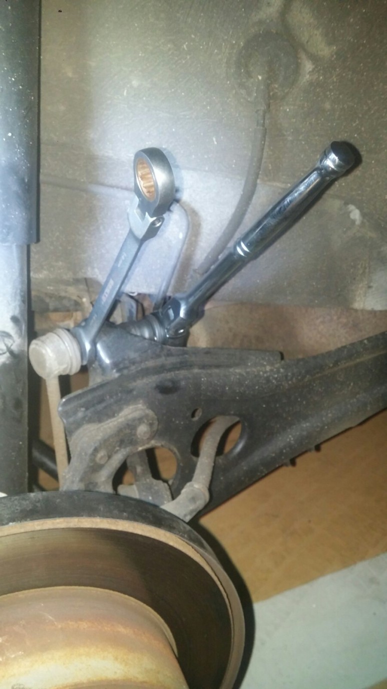 너트(14mm)가 휙휙 돌아간다. 이럴땐 부싱 쪽에 14mm 스패너로 잡아주고 푼다. 그냥 풀리는 너트도 있고 스패너로 잡아줘야 되는 놈도 있고 그렇다.