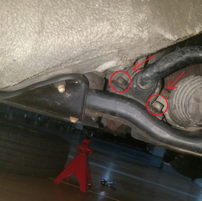 보이는 14 mm 볼트 2개 제거하고 브라켓 빼고 부싱 빼고 신품으로 교체. 볼트에 녹이 심하다. Penetrating oil 듬뿍 뿌려주고 철 브러시로 녹과 묶은 먼지를 벗겨주고 임팩으로 드르륵 풀러 준다. 조수석 쪽은 머플러 간섭으로 수공구로 풀러야 한다. 신품 부싱이 뻑뻑해서 끼울 때 힘 좀 써야 한다. 좌/우 동일 작업 반복.
