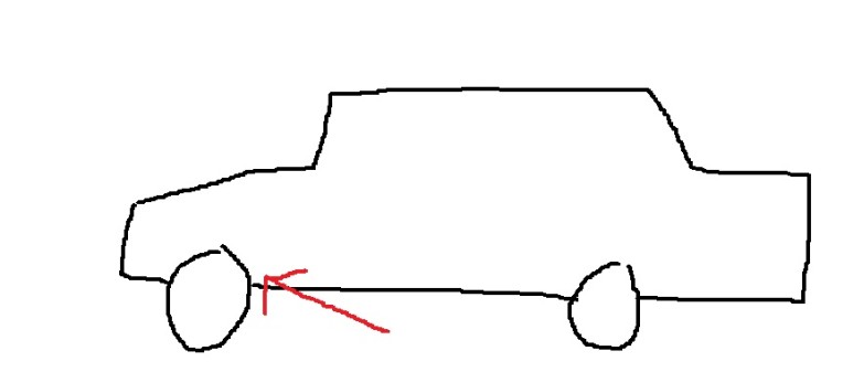 또 하나 힌트를 얻었다. 나도 저 동영상처럼 서브프레임 앞쪽을 들었으면 순정 잭 포인트에 안전말목이 없을테니 활대 링크 아래 너트에 옵셋 렌치 걸어놓고 누워서 발로 힘껏 밀어주면 너트가 풀렸을 거다 (조수석은 반대이니 이렇게 누워서 밀면 너트가 잠기는 방향이니 오해말 것). 다이하면서 공간의 제약으로 손힘을 주기 힘들땐 과감히 누워서 발로 밀어주기 하면 되는데 순정 잭 포인트에 안전말목이 있어서 발을 뻗을 수가 없어서 이렇게 작업도 못했다. 미리 이 동영상을 봤으면 하는 아쉬움도 남네 그려. 발로 어떻게 미냐고? 발로 그린 그림을 보시라. ㅋㅋ.