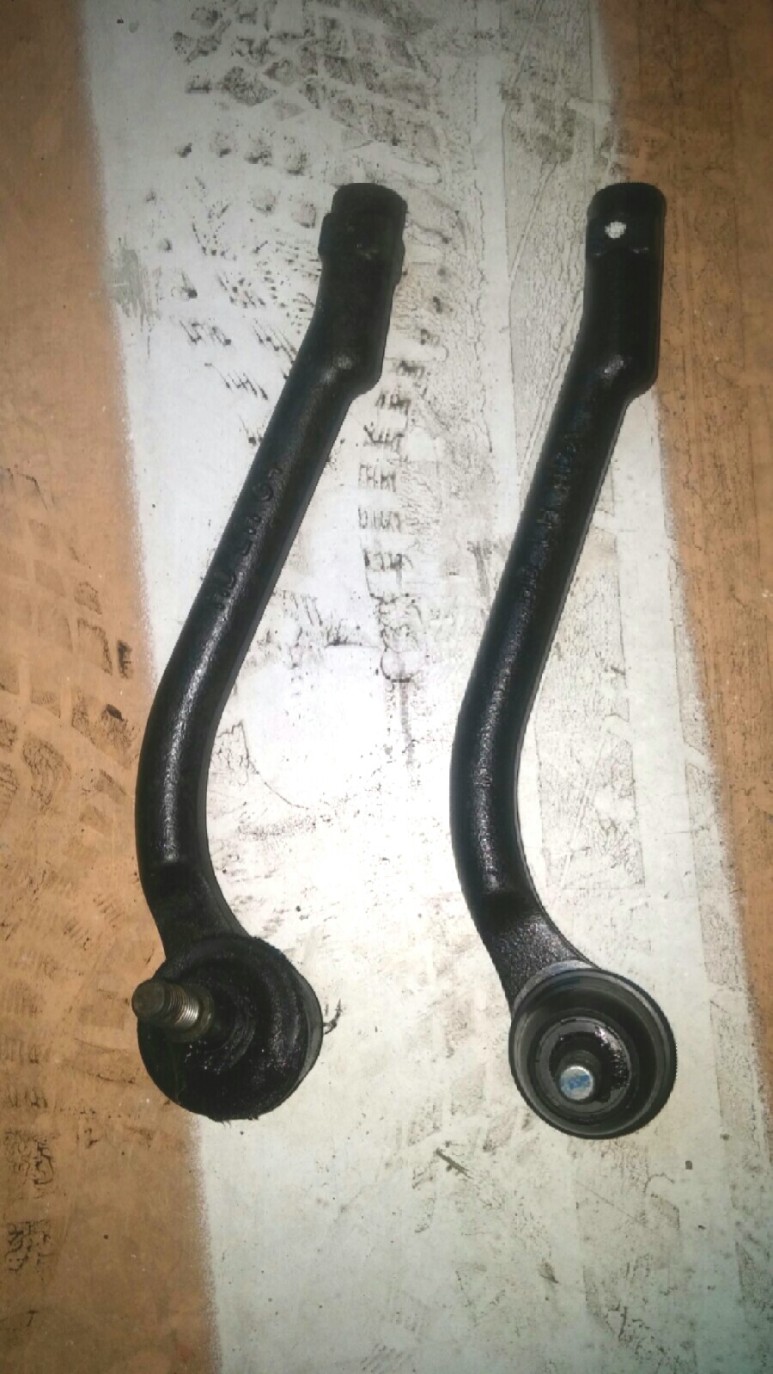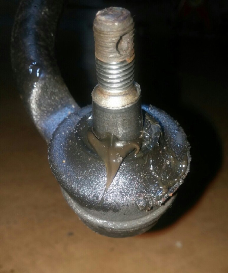 그런데 앞 타이어2개의 트레드가 거의 마모 한계선까지 보여서 2개만 교체하러 갔다. 물론 인터넷으로 미리 주문하고 갔지. 타이어 2개 탈착하고 교체하는 사이 핸폰 프래쉬를 비쳐 가면서 앞쪽 하체를 자세히 보니 운전석 타이 로드 엔드 고무가 터져서 그리스가 조금 흘러나온 상태다. 흠 날만 조금 푹하면 바로 교체닷. 뭐 10년이 지난 차라 잼 너트가 고착돼서 안 풀리면 개고생 가능성이 있지만 도전 정신으로 대든다.