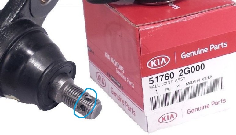 2G000 품번(요게 기아 로체에 같이 쓰임)으로 새로 부품을 받아서 확인했더니만 글쎄 아니 글쎄 볼 조인트 스터드에 구멍이 없네 그려. 구멍이 있어야 분할핀을 꽂아서 캐슬 너트를 고정시키는데 말야.