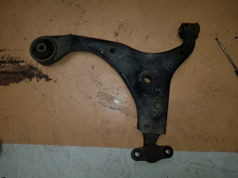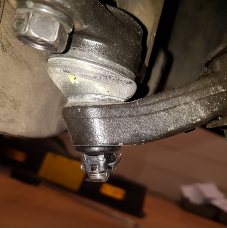 볼 조인트를 너클에서 이격 시킨 후에 로워 암을 손으로 잡고 상/하로 흔들어 본다. 부싱에 문제가 있다면 이때 찌그덕 찌그덕하는 소리를 내게 된다. 역시 찌걱찌걱 소음이 난다. 요건 글 중반부 동영상에서 확인.