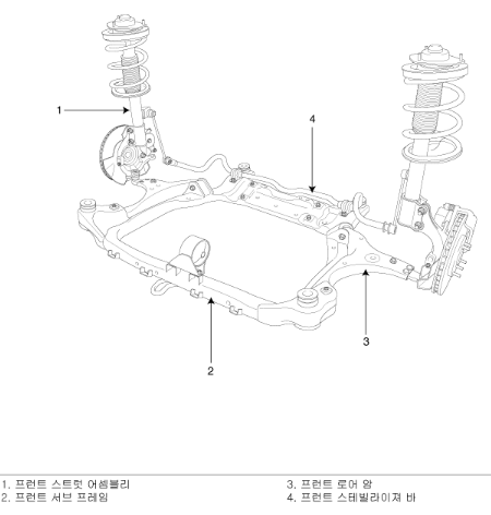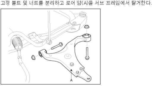 부품 도해도를 보시다 시피 로워 암은 총 3개의 연결부가 있다. 서브프레임에 연결되는 2곳, 너클에 연결되는 1곳. 서브프레임에 연결되는 2곳 중에서 차량 앞쪽으로 대(큰) 부싱이 있고 차량 뒤쪽으로 소(작은) 부싱이 있다. 너클에는 볼 조인트를 통해서 연결된다. 로워 암의 수명은 결국 부싱이 수명을 다해서 문제가 생기는데 이 부싱이 문제가 생길 정도면 당연히 볼 조인트 역시 수명이 다하기에 로워 암 교체 시에 같이 교체해 주면 좋다. 동시에 작업하지 않으면 나중에 볼 조인트 교체만으로 다시 뜯어야 하기에 이중으로 고생하거나 공임을 지불해야 한다.