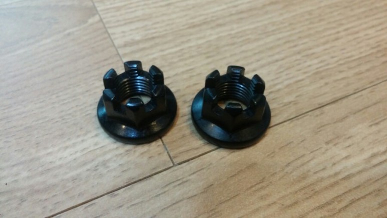 이제 볼 조인트 볼트 부분을 로워 암과 체결하고 캐슬 너트는 토크 렌치를 사용해서 조여준다(8 ~ 9 kgf.m). 너클 전체를 들어 올리면서 로워암을 대 드라이버를 이용해서 아래로 제쳐주면서 로워 암 구멍에 볼 조인트를 끼워야 한다. 힘 좀 써야 한다. 코터핀을 캐슬 너트에 끼워서 마무리.