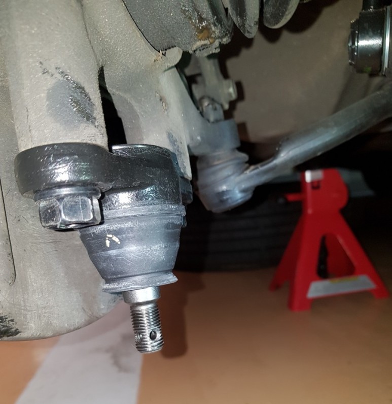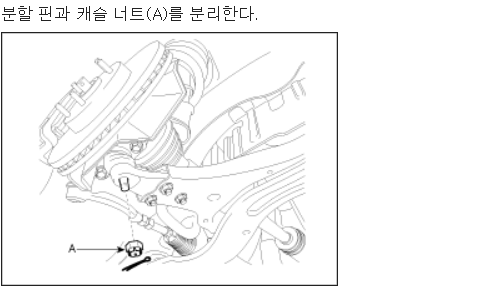 볼 조인트를 동시에 교체하기에 굳이 이 과정을 할 필요 없다. 걍 볼 조인트 고정 브라켓의 볼트 2개를 풀면 된다. 캐슬 너트 재활용 시에는 캐슬 너트만 풀어 주고 따로 볼 조인트를 너클에서 힘들게 뺄 필요는 없다.