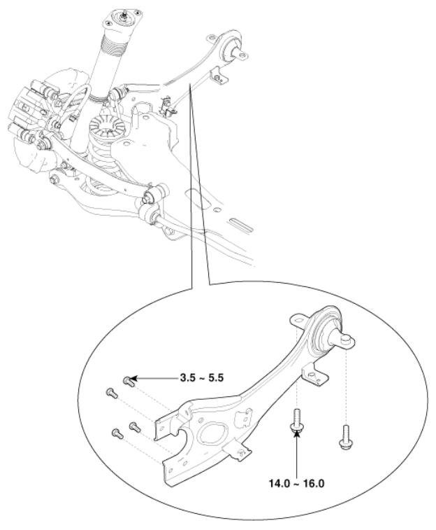 *트레일링암은 자동차 진행 방향 기준으로 세로로 설치되는 암을 말한다. 아래 그림 참고.