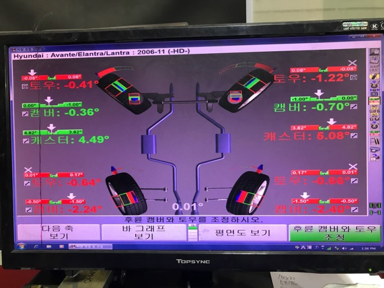 등을 교체하였기에 얼라인먼트가 필수다. 오늘 아들 녀석을 시켜서 얼라인먼트를 점검 및 조정했다.