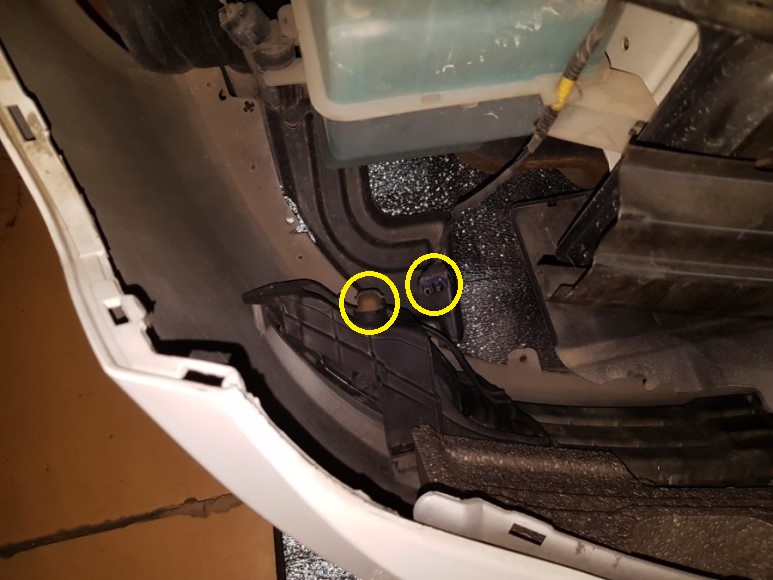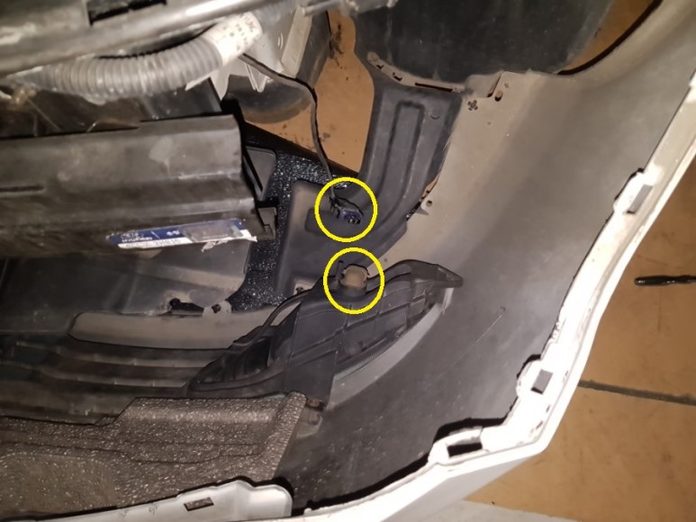 반 탈거란 범퍼 하단 언더 커버 고정 나사를 풀지 않은채 탈거하면 저렇게 반쯤 걸린 상태까지만 탈거시키는 걸 말한다. 범퍼 탈거시 좌/우 안개등 커넥터 분리하는 거 잊지 말도록. 안 그럼 배선이 끊어질 수도.