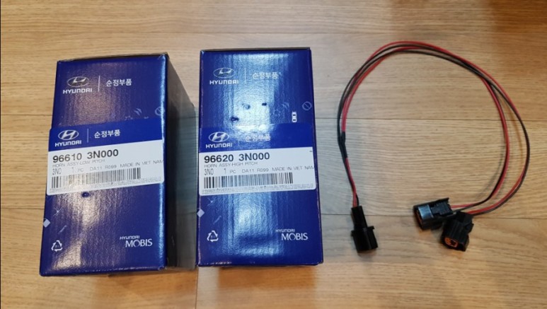 - 에쿠스 듀얼 혼 (걍 다이 전용으로 모비스 순정품과 전용 잭으로 구성된 제품으로 샀음)