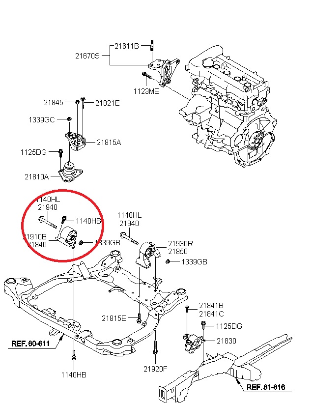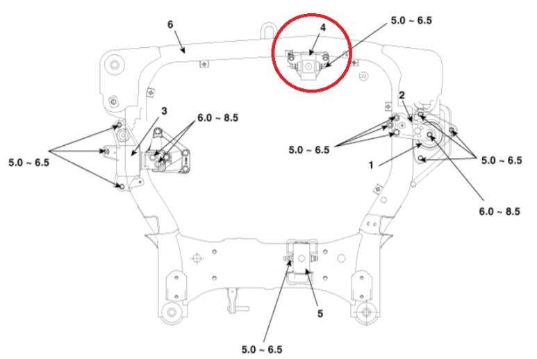 엔진룸을 정면에서 바라보았을 때 좌측에 엔진 마운트, 우측에 미션 마운트가 자리 잡고 있다. 또한 차량 하부 프런트 크로스 멤버 전면에 롤 스토퍼, 후면에 롤 스토퍼가 각 1개씩 자리 잡고 있다.