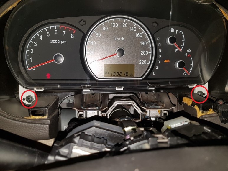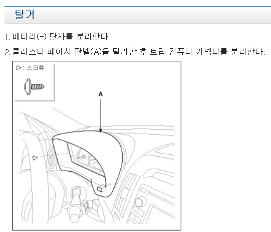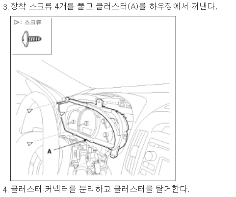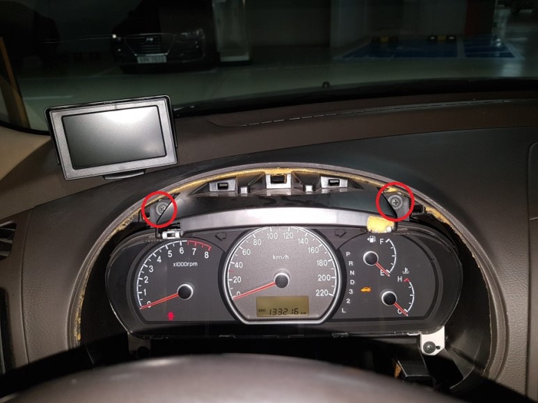 아방이 계기판 탈거는 쉽다. 계기판 윗쪽에 나사 2개만 풀면 된다. 나사 풀고 당겨서 빼내고 뒷면 커넥터 분리하면 된다. 간단하다.