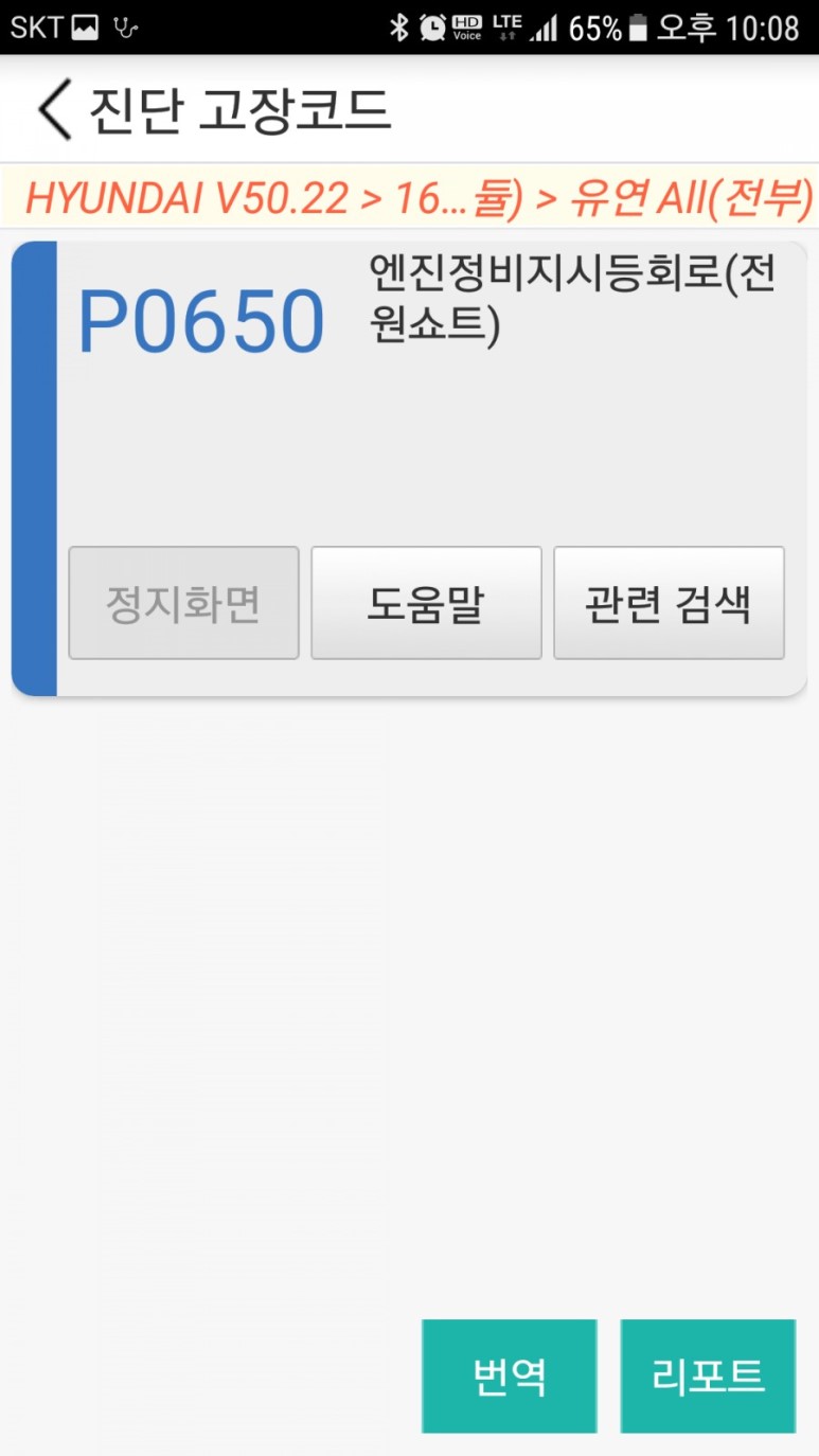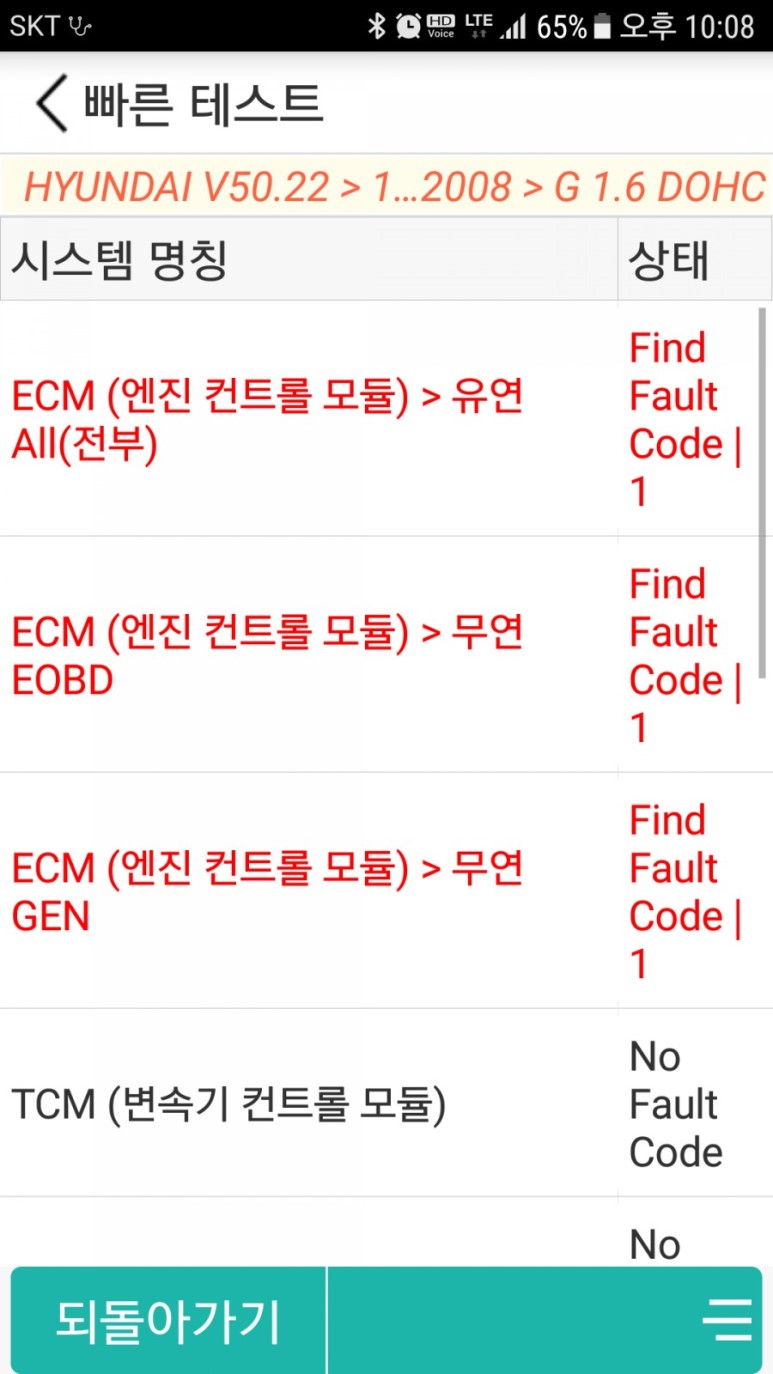 계기판에 경고등이 뜨지는 않지만 스캐너를 동작해서 보니 경고등이 뜨더군. 이건 계기판 탈착으로 인한 경고등인데 간단하게 소거해 주면 끝.