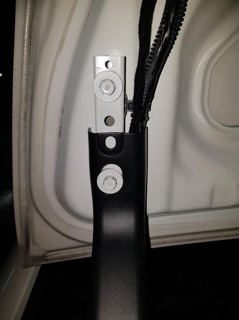 내장제를 걷어내고 순정 볼트로 커버 위쪽을 고정한 모습. 순정 배선 라인도 위치 이동 없이 걍 끼워도 아무런 문제없음.