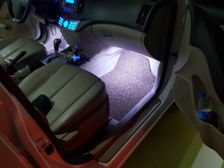 풋등은 간판용 LED를 사용(예전에 여러 개 사두었다가 여기저기 다용도로 많이 써먹었음. 이제 다 썼음). 운전석 하단에 모듈 1개(LED칩 3발), 조수석 하단에 1개 이렇게 설치할 예정.