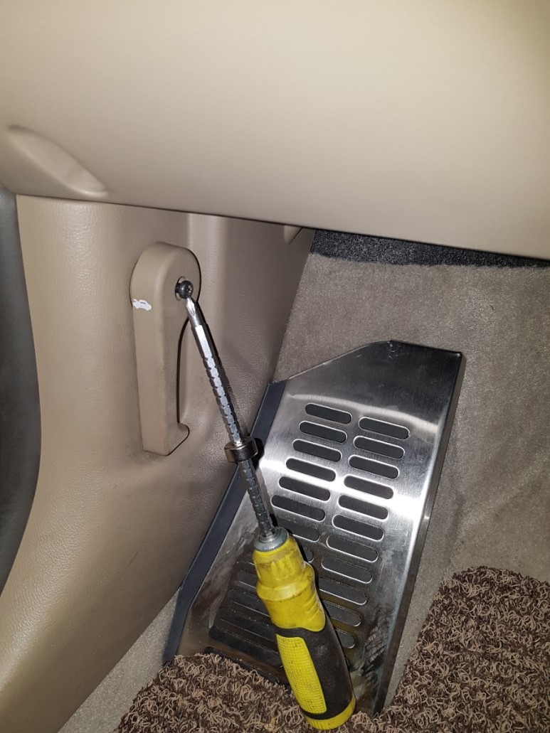 나사를 풀러서 후드 릴리스 핸들을 탈거.