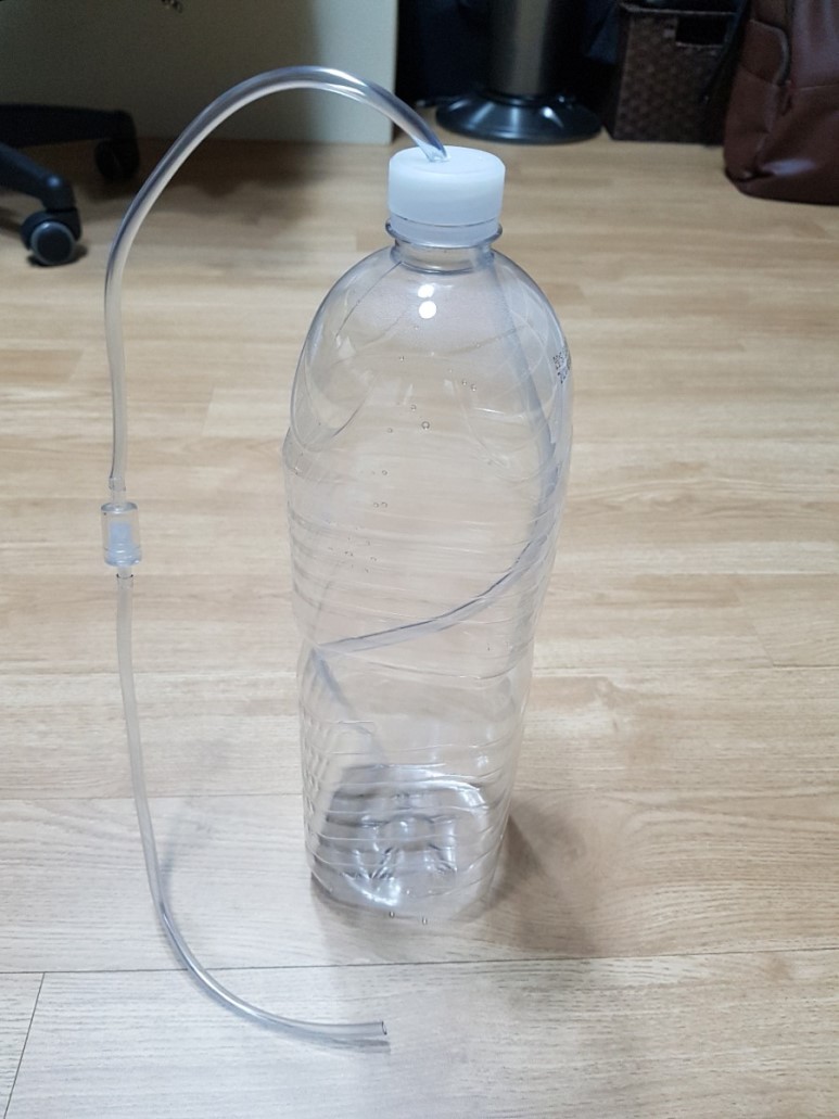 역류방지용 체크밸브와 에어 호스 (수족관용으로 쓰이는 물품들임) 구입. 체크밸브 개당 1천 원 미만. 호스 역시 3 ~4미터에 1천원 정도면 구입. 호스는 외경 6mm, 내경 4mm짜리. 호스는 가능하면 투명한 걸로 내부가 보이는 걸로 하는 게 좋다. 그래야 액이 빠지는지 액에 에어가 차 있는지 등을 육안으로 볼 수 있기 때문이다.