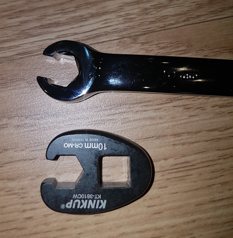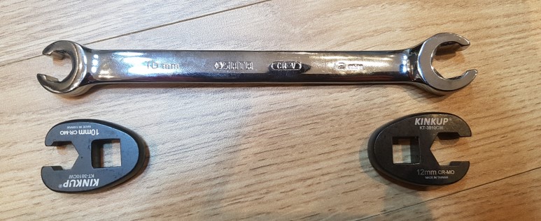 그리고 브레이크 계통에 쓰는 전용 렌치(플레어 너트 렌치 라고 불리는 공구) 구입. 사실 크로우 풋 이라는 공구를 갖고 있는데 이게 플레어 너트 렌치 형상이라서 굳이 안 사도 되는데 10/12mm 한 개만 사 봤다. SATA라는 브랜드인데 나중에 찾아보니 미국 APEX라는 회사의 자회사로 공장은 중국. 품질이 아주 좋다.