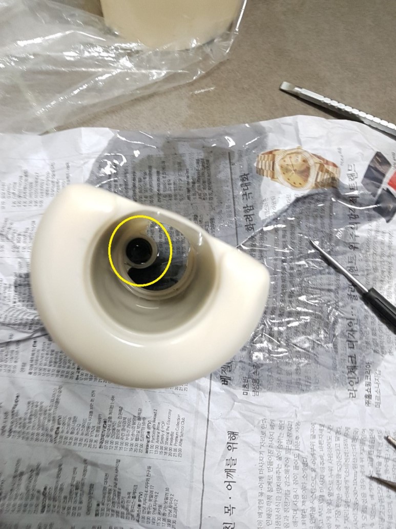 분리는 각자 알아서. 플라스틱 키로 고정되어 있기 때문에 일자 드라이버를 이용해서 살살 제끼면서 조심히 분리하면 된다. 커넥터도 모두 분리. 분리하는 과정 중 O링이 어디에 처박혀 있는지 유심히 살필 것.