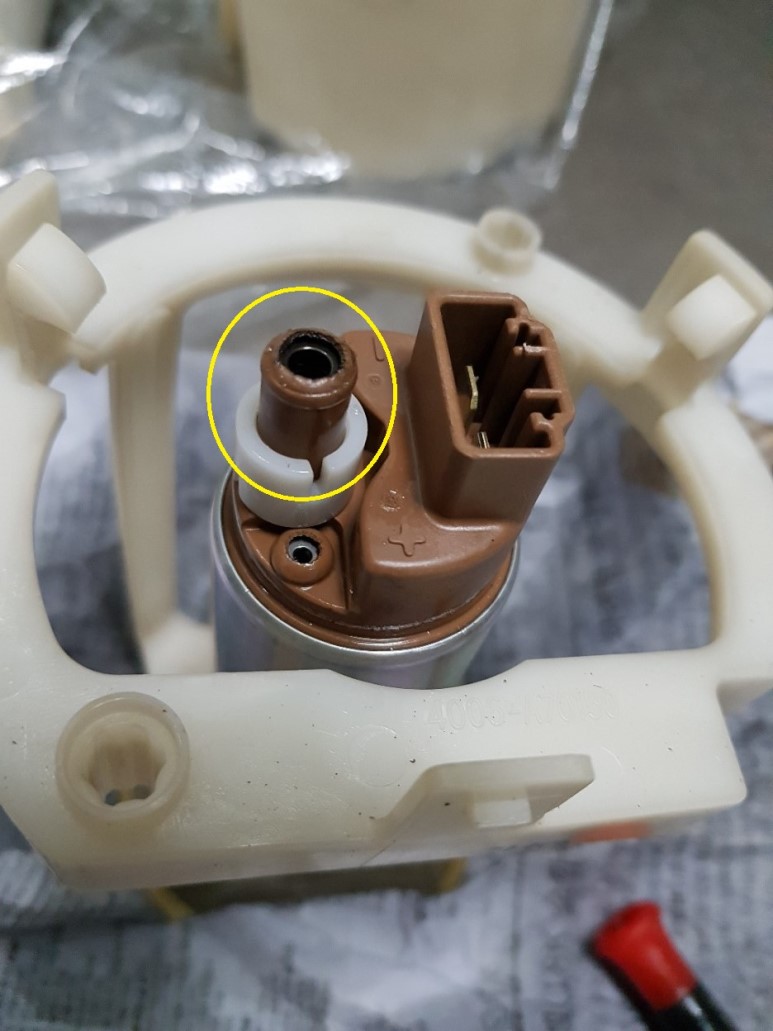 연료 필터에 박혀 있는 오링이 연료 펌프 모터의 이 부분과 결합된다.