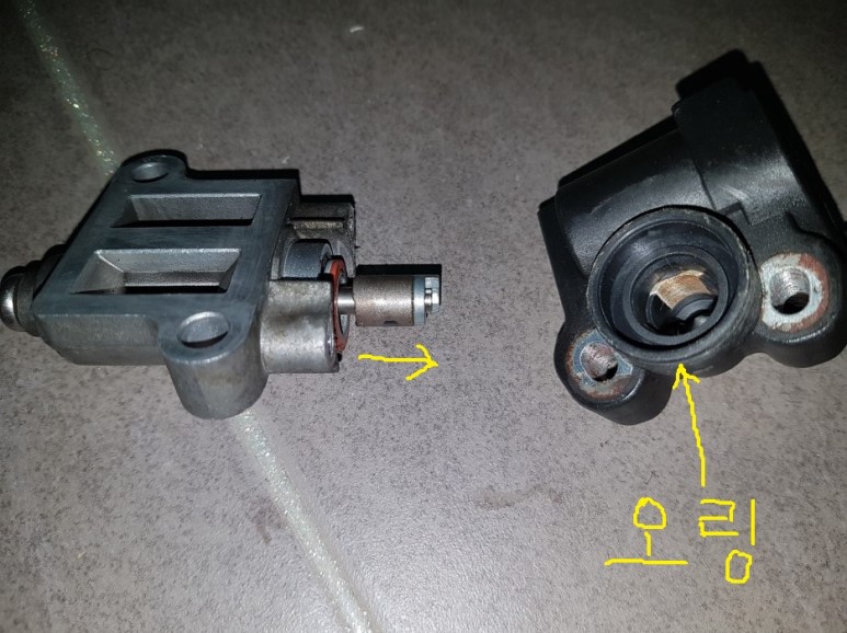 나사 2개를 풀고 ISCA 바디와 공기유입구(밸브)를 서로 반대방향으로 90도 비틀어 주면 바디와 공기흡입구가 분리된다. 공기유입구쪽에 밸브(샤프트)가 박혀 있으니 잡아당겨서 빼낸다. 밸브가 영구자석이라서 자석의 힘으로 붙어 있기 때문에 저항이 느껴지는데 확 잡아 빼면 빠지니까 걱정하지 말고 빼낸다. 바디 쪽에 끼워져 있는 오링은 분실하지 않도록 주의한다. (작업 중에는 미쳐 인지하지 못했는데 나중에 조립하려고 보니 한쪽에 떨어져 있던 오링이 보이더라는...)