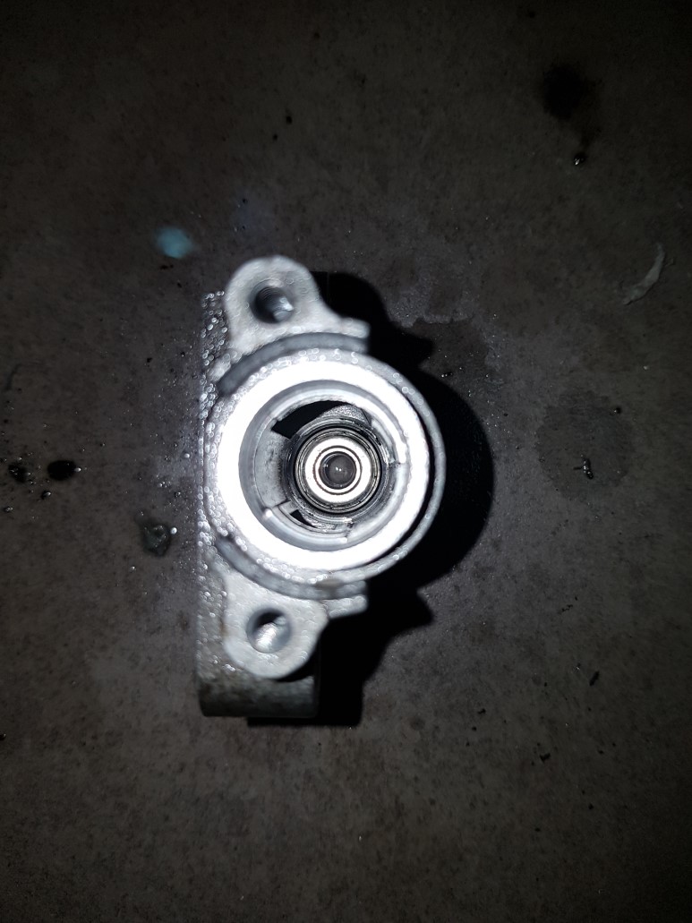 밸브 중간에 베어링이 보인다. 공기유입구에서 밸브를 빼내면 그 안쪽에도 작은 베어링이 있다. 이것까지 빼려면 공기유입구 외부의 십자 나사 1개를 푸르면 된다. 이 십자 나사는 강력하게 조여져 있고 드라이버 날이 굵은걸 써야 한다. 마땅한 굵기의 드라이버가 없으면 그냥 분해하지 말 것.