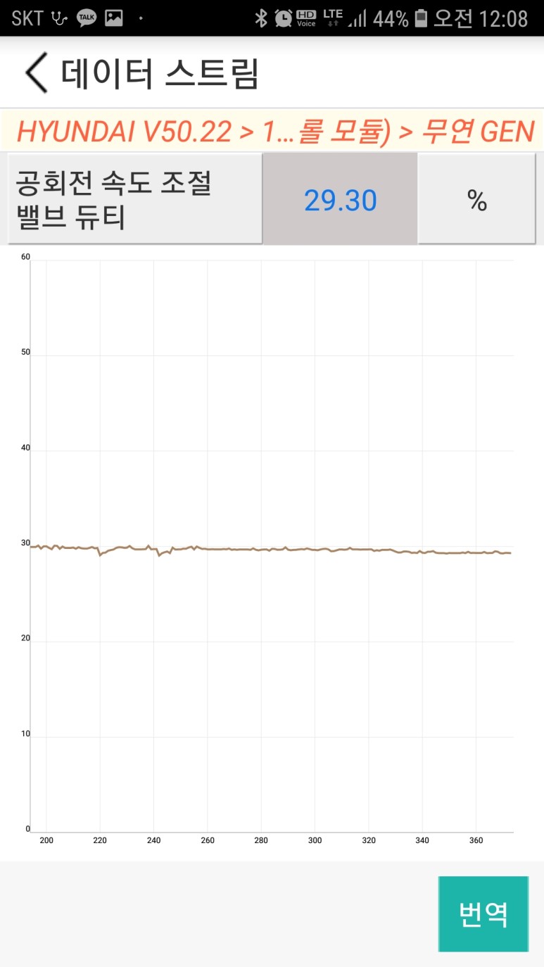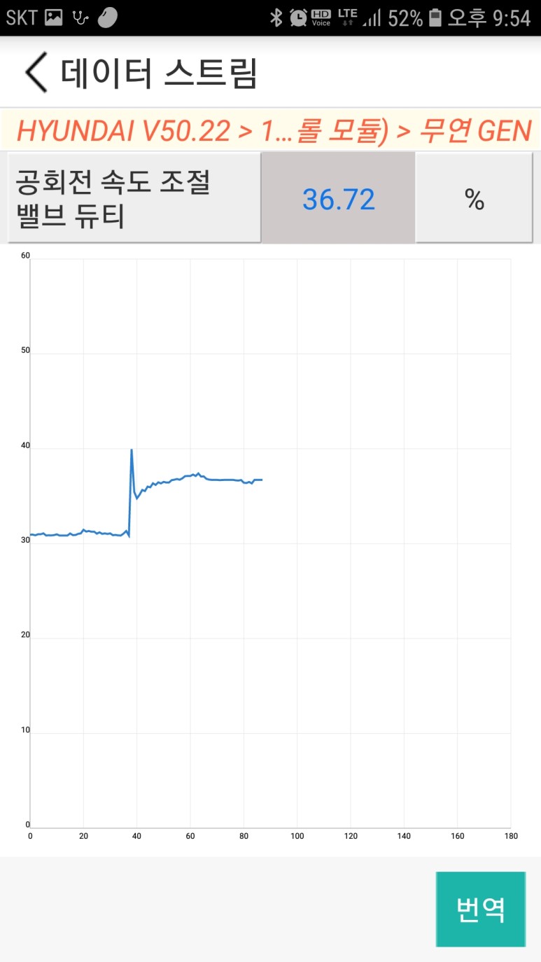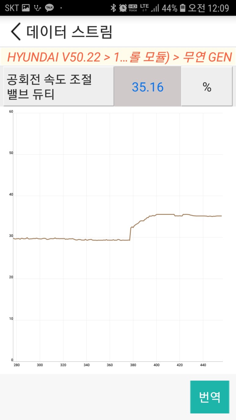 분해 청소 전에 스캐너로 공회전 속도 조절 밸브 듀티 값과 작업 후 듀티 값을 확인해 보자.