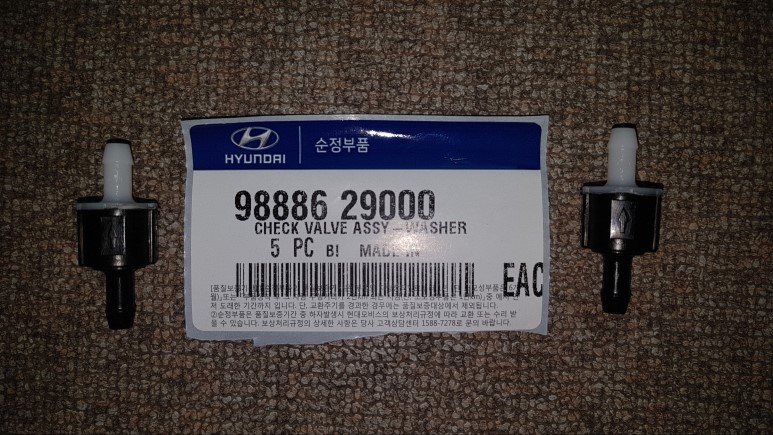 품번: 98886-29000 (가격 330원). 무려 2개나 샀다. 하나는 아방이에게 또 하나는 LF소나타에 끼워주려고. 나인이는 워셔액 라인에 체크밸브가 없는데 작동해 보면 워셔액이 먼저 뿜어져 나오더이다. 사실 아방이도 워셔액이 먼저 나오더이다 ㅋㅋ.