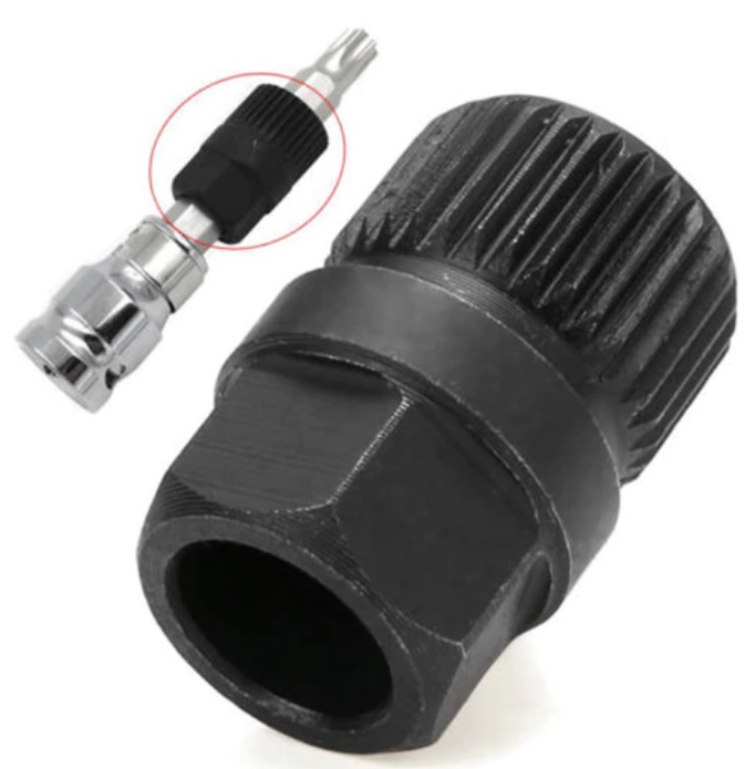 특공을 끼우고 특공 구멍으로 T50 별 렌치를 집어 넣고 알터네이터 스터드(풀리 끼우는 부분)를 고정한 상태에서 수공구 렌치나 토크렌치를 쓰면 된다. 알터네이터 풀리 체결 토크는 대게 65 ~ 70 ft.pound(9.0 ~ 9.7 kgf.m) 정도다. 생각보다 아주 강한 체결 토크를 요한다. (타이어가 보통 9 ~ 11 kgf.m로 체결되니까 말이다.)