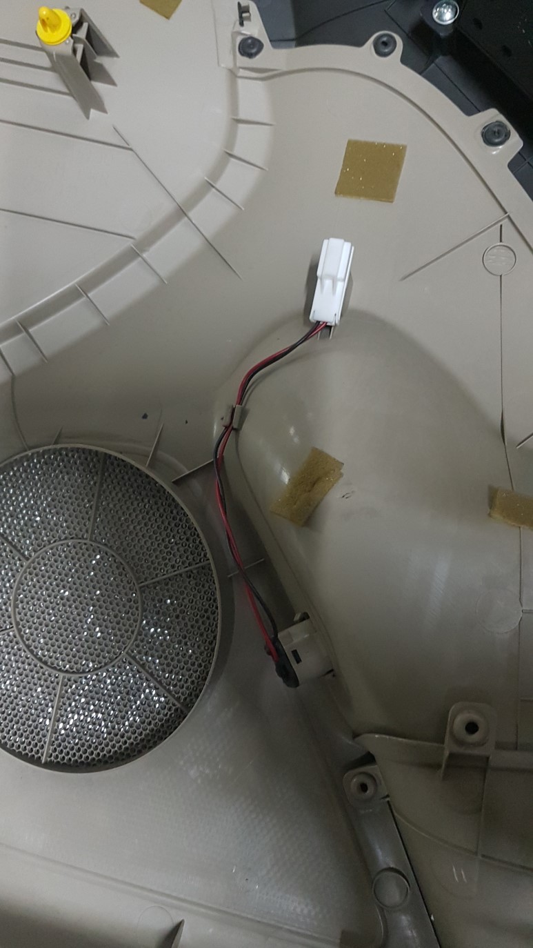 (일전에 도어 액츄에이터 교체할 때 스피커 커넥터를 뺐었는데 조립할 때 커넥터를 그만 끼지 않고 도어 트림을 조립해 버렸다. 아들 녀석이 소리 발란스가 이상하다고 자기가 귀를 대고 확인했더니 운전석 스피커에서 소리가 안 나온다고. ㅋㅋ. 미안타. 내가 정신이 읎다. 어차피 도어 트림을 다시 뜯어야 할 상황)