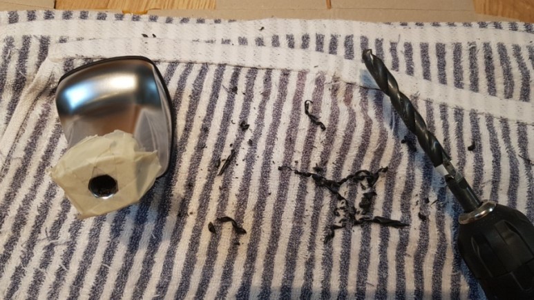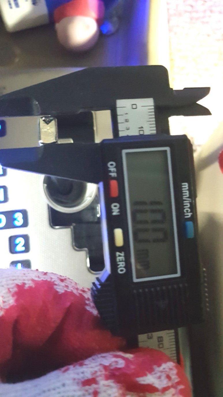 모하비 기어봉 전체 높이가 96.5 mm 이다. 구멍의 깊이는 54.5mm라고 제품 설명에 나와 있는데(이 깊이는 모하비에 장착되는 높이인 듯) 버니어 캘리퍼스로 재보니 약 80mm에서 한번 걸리고(구멍이 좁아지는 듯) 최종 깊이는 88mm 정도다. 고로 이 지점까지 뚫어야 하나 어쩌나 싶다. 88mm 지점까지 뚫는다면 여유 공간이 8.5mm 정도밖에 없다는 셈이다. 깊이를 잘 고려해서 드릴질 해야지 암 생각 없이 드릴질 하다가 콱 뚫고 나오지는 않겠지 설마...