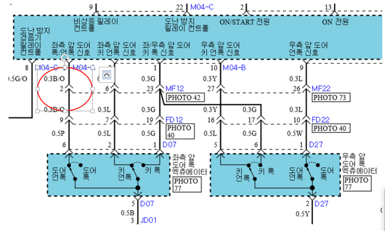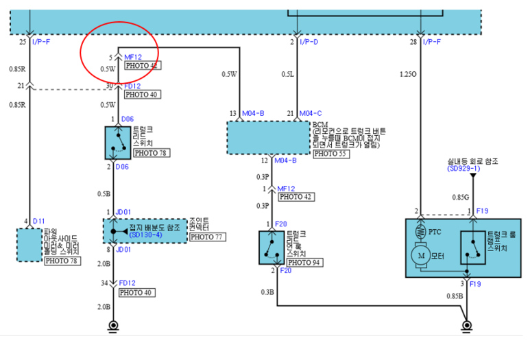MF12 커넥터의 상세 전장회로도.