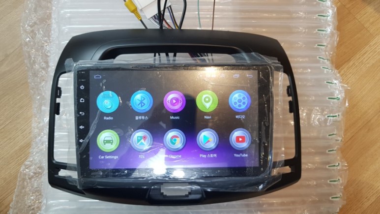 센터패시아 일체형이다. 몇 달 전 7인치 터치스크린 오디오 장착할 때 개고생한 경험이 있는지라 센터페시아 일체형으로 구입했다. 마무리 이런거에 신경 쓰지 않으면 안올만 별도로 구입할 경우 좀 더 저렴하게 구입가능하다. 그러나 일반인들에겐 권장하지 않는다. 별도 구입시 9인치는 어렵고 고작 7인치 정도라야 기존 센터페시아 자리에 집어넣을 수 있는 한계도 있다.