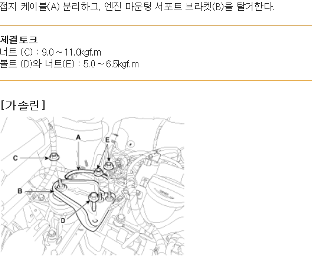 볼트, 너트 체결 완료 후에 공차체결은 해 주면 좋다. 공차체결을 하려면 위에서 설명한 신품 부품에 원래 붙어 있는 너트(C)를 살짝 풀어준 상태에서 엔진 시동을 걸고 기어 레버를 P, R, N, D 각 단에서 5초씩 머물면서 1회 왕복해 준 후에 풀었던 너트를 정상 체결 토크로 조여주면 된다.