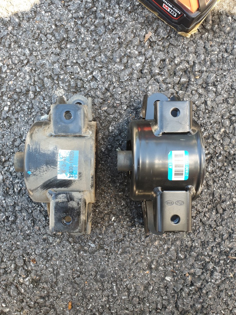 구품 샷. 고무가 갈라지거나 찢어진 흔적은 없지만 고무가 너무 낭창낭창해서 엔진 진동/떨림을 제대로 흡수하지 못하는 상태로 보인다.
