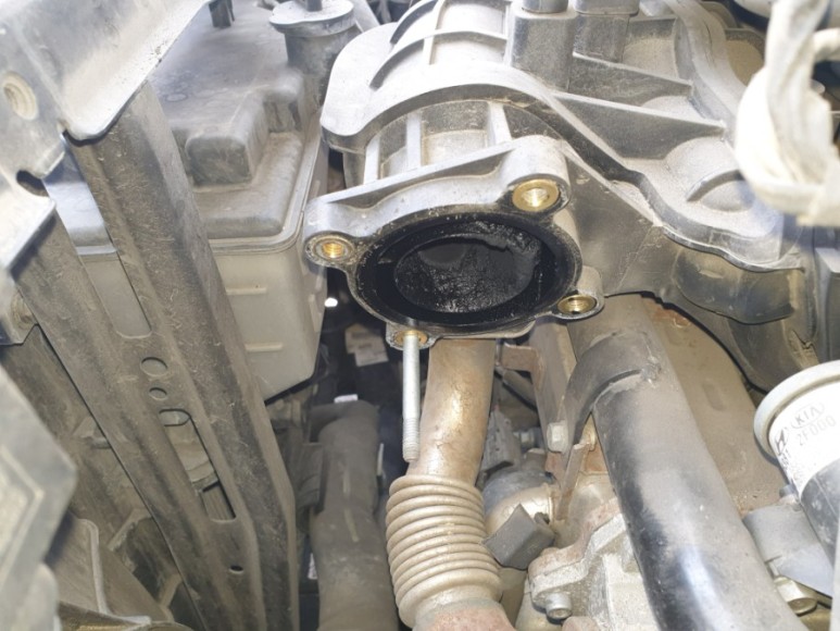 스로틀 플랩 밑에 위치한 EGR 파이프가 개선품이 있다고 해서 요놈도 작업해 볼까 생각했는데 탈거가 만만치 않아 보이는구만. 스로틀에 침착하는 카본의 양을 줄이기 위한 개선품인데 그냥 둬도 뭐 괜찮을 듯.