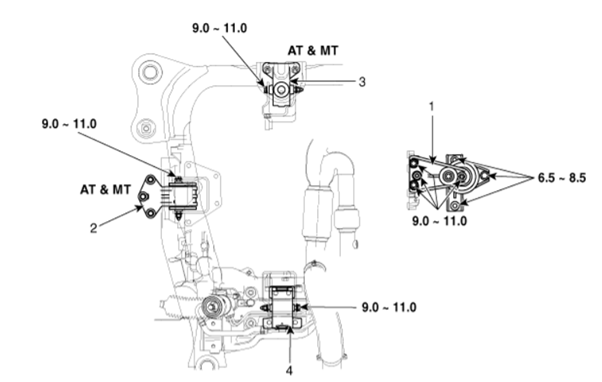 브라켓 17mm 볼트/너트 9.0 ~ 11.0 kgf.m