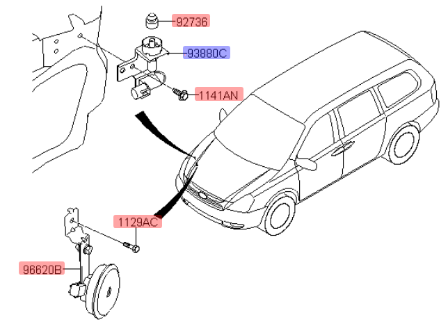 2009년식까지 그랜드 카니발 도난방지 시스템 회로도를 보자. 당근 후드 스위치가 있다.