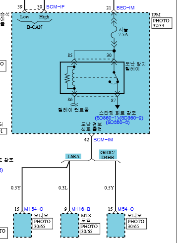 BCM-IM 커넥터로 연결된 후드 스위치가 사라졌다. 전장회로도를 아무리 뒤져도 후드 스위치를 찾을 수 없다. 어딘가에 있는데 못 찾는 것일 수도 있다. 모비스 WPC 부품 검색으로 후드 스위치가 있으니 전장회로도 어딘가에 후드 스위치가 보여야 하는데 찾을 수 없으니 원...