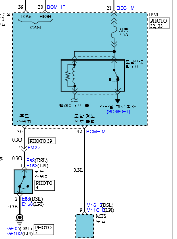 2010년식부터 그랜드 카니발 R의 도난방지 시스템 회로도를 보자.