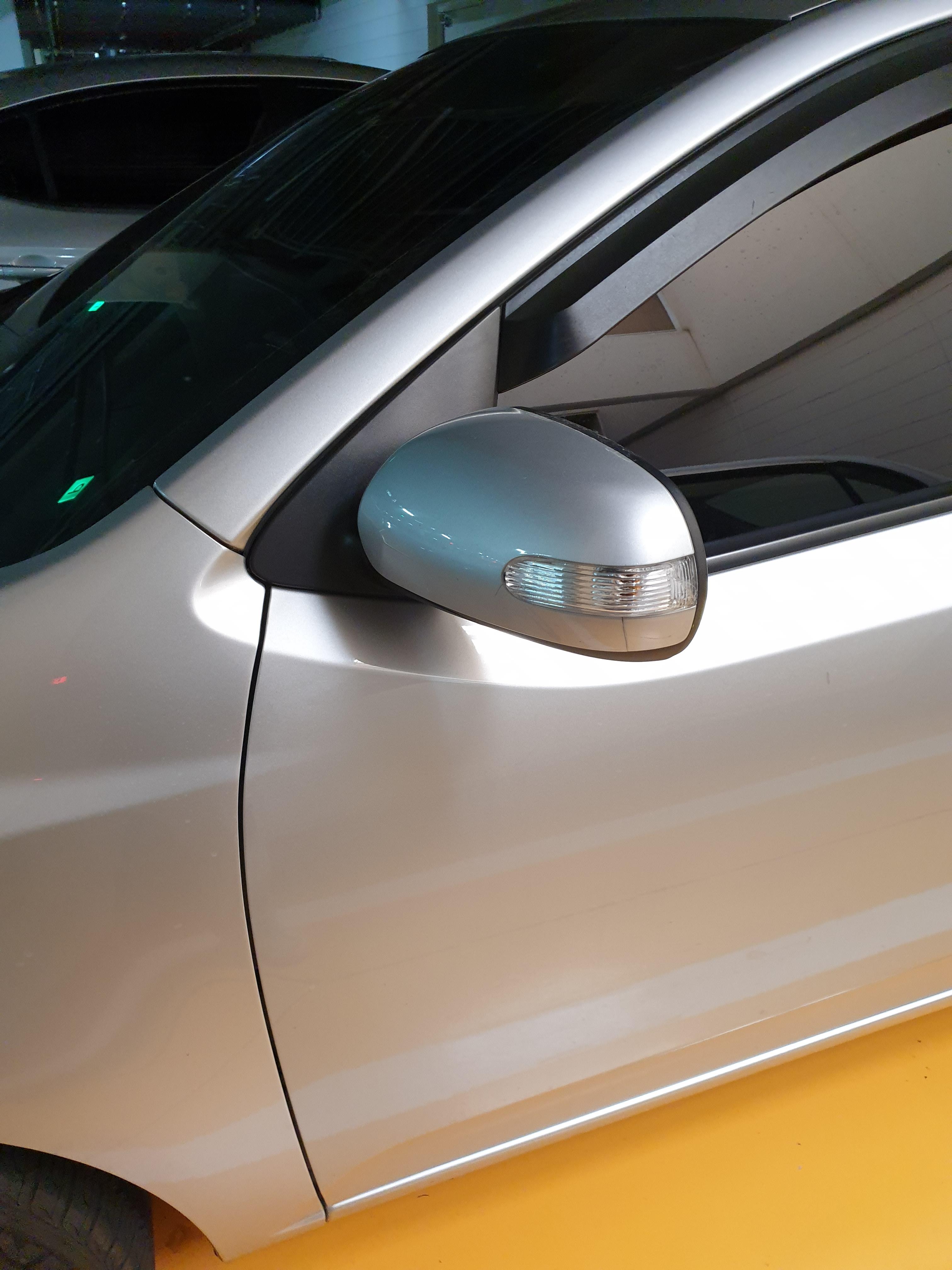 브라이트 실버(색상코드 3D) 색상의 포르테. 사이드 미러 역시 차체 색상과 동일한 색상이다. 포인트를 주기 위해서 사이드 미러 커버를 유광 검은색으로 바꿔 보자.