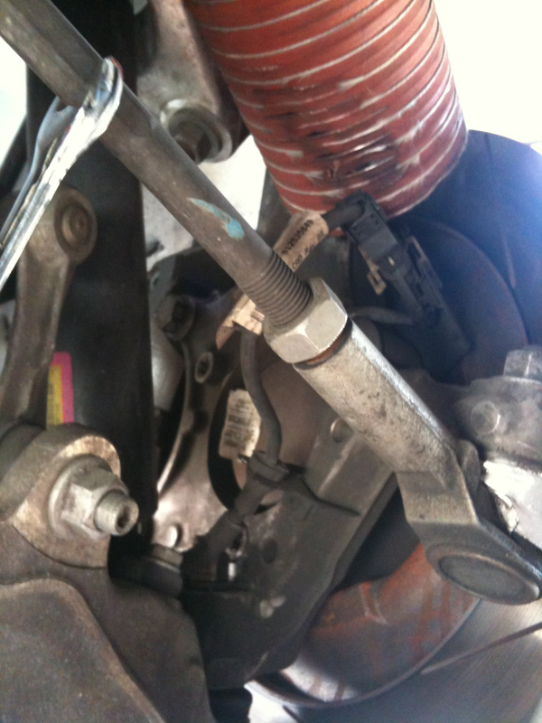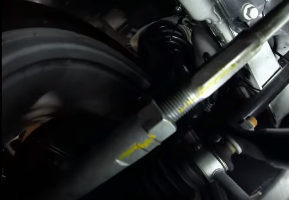 이제 우리는 이너 타이로드의 길이를 줄이거나 늘려서 핸들 정중앙 상태를 만들어야 한다. 아우터 타이로드는 암나사이고 이너 타이로드는 숫나사 형태로 두 개가 결합된다. (아우터/이너 타이 로드 나사부는 차종마다 암/숫나사 방식이 다를 수 있음)