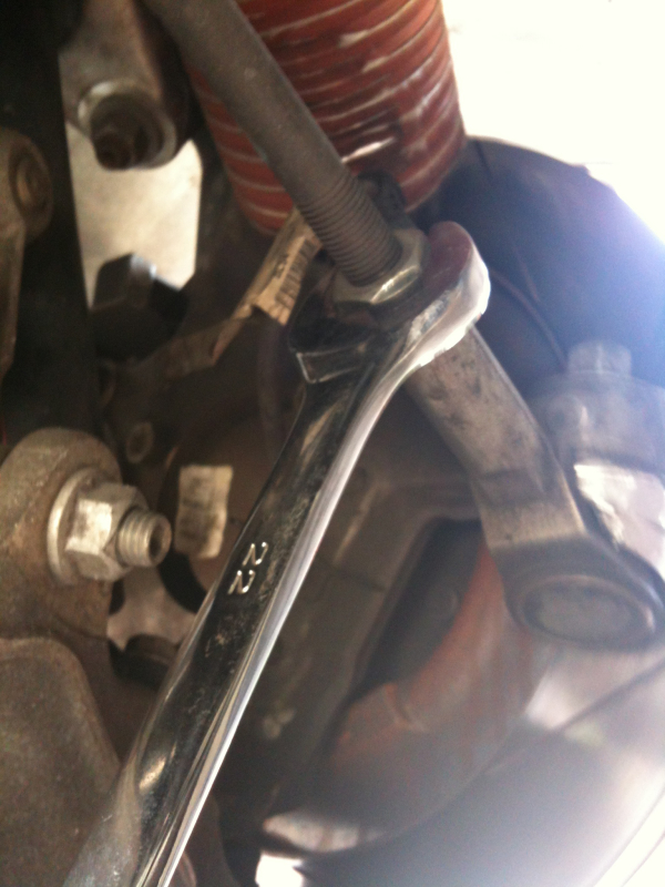 이제 잼너트를 느슨하게 푼다. 자신 차종의 잼너트 사이즈에 맞는 스패너를 이용하여 푼다. 몇 년 이상 얼라인먼트를 전혀 손보지 않은 차량이라면 이 잼너트가 고착 되어있어 푸는데 애 먹을 가능성이 높다. 재주껏 풀어야 한다.