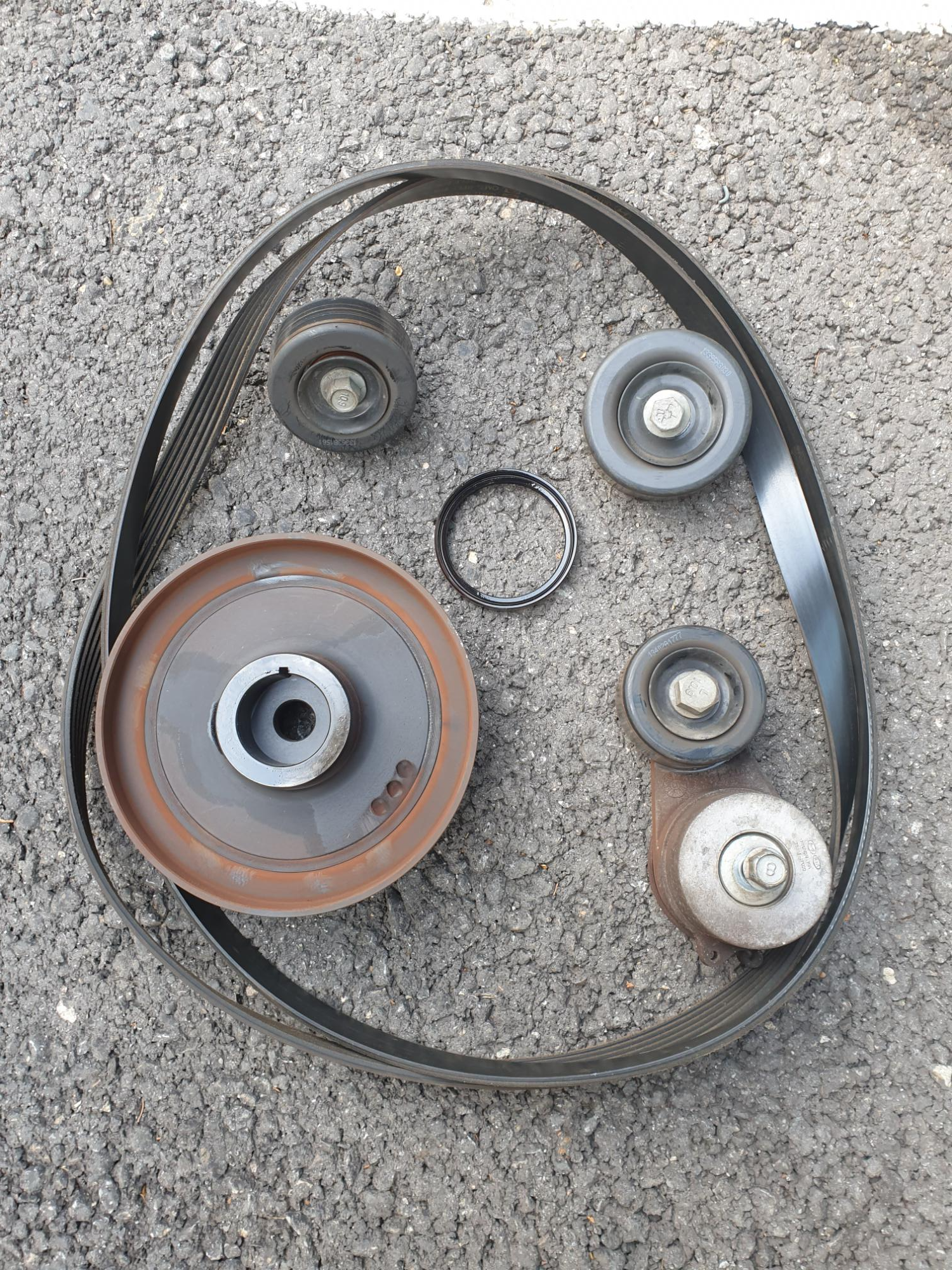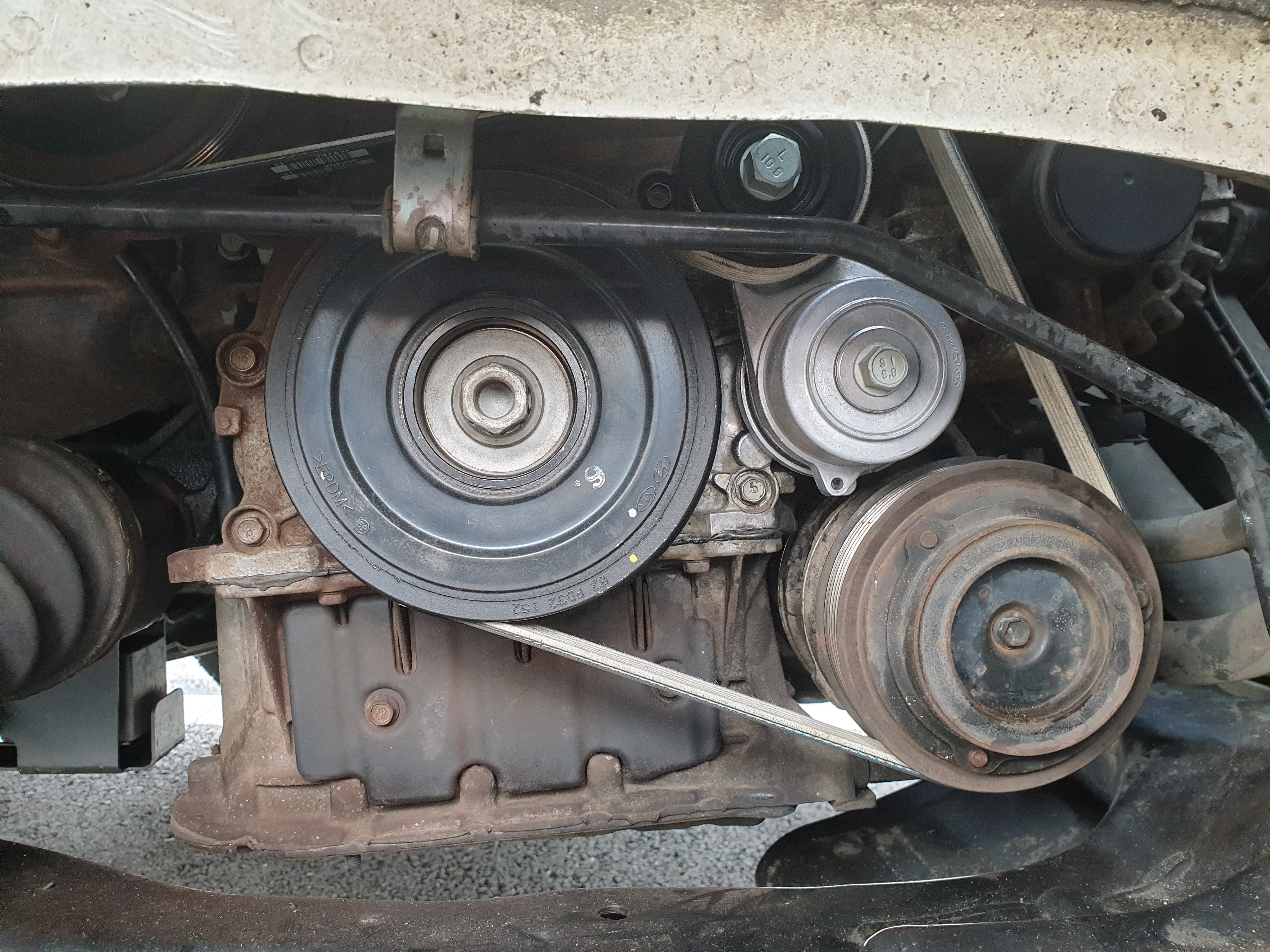 18. 작업 완료 후 시동을 걸고 구통 벨트 작동 상태와 이상 소음이 나는지 점검한다. 아주 조용하구먼. 댐퍼 풀리의 워블링 현상도 사라졌다. 벨트 쪽 작업을 여러 번 해 본 경험이 있어서 인지 생각보다 그리 오래 걸리진 않았다.