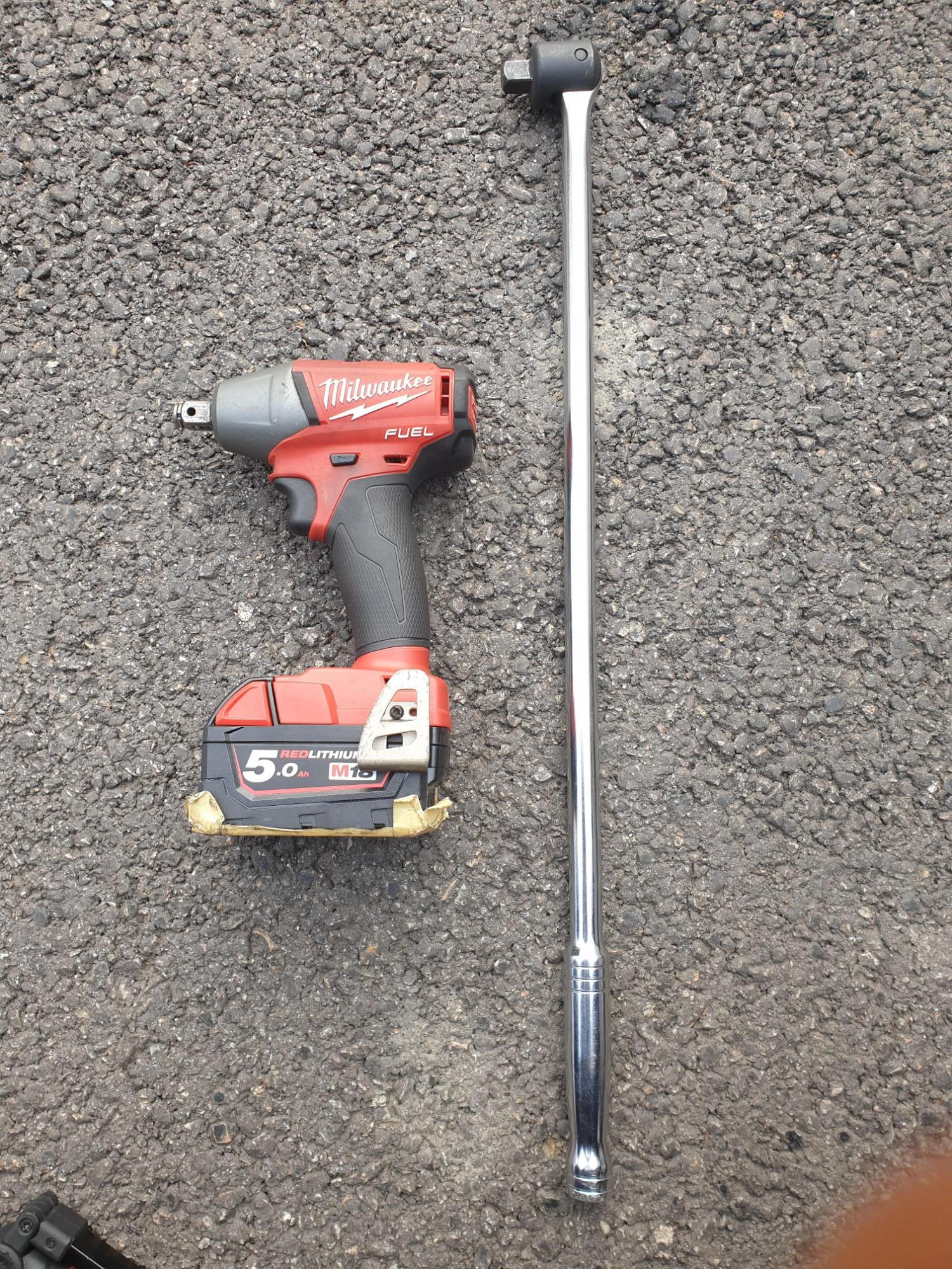 ● 밀워키 전동 임팩으로 두두두두두두두두두두두두 조였다. 한 30여 초간 조였다. 볼트에 마킹도 하기 전에 풀려 버리는 통에 얼마만큼 조여야 적정한지 알 길이 없다. 사용한 밀워키 임팩 렌치의 최대 토크는 30 kgf.m이다. 볼트를 손으로 돌려서 더 이상 돌아가지 않는 상태에서 임팩으로 조졌더니 각도상 90도를 살짝 넘어간 상태까지 조여졌다.