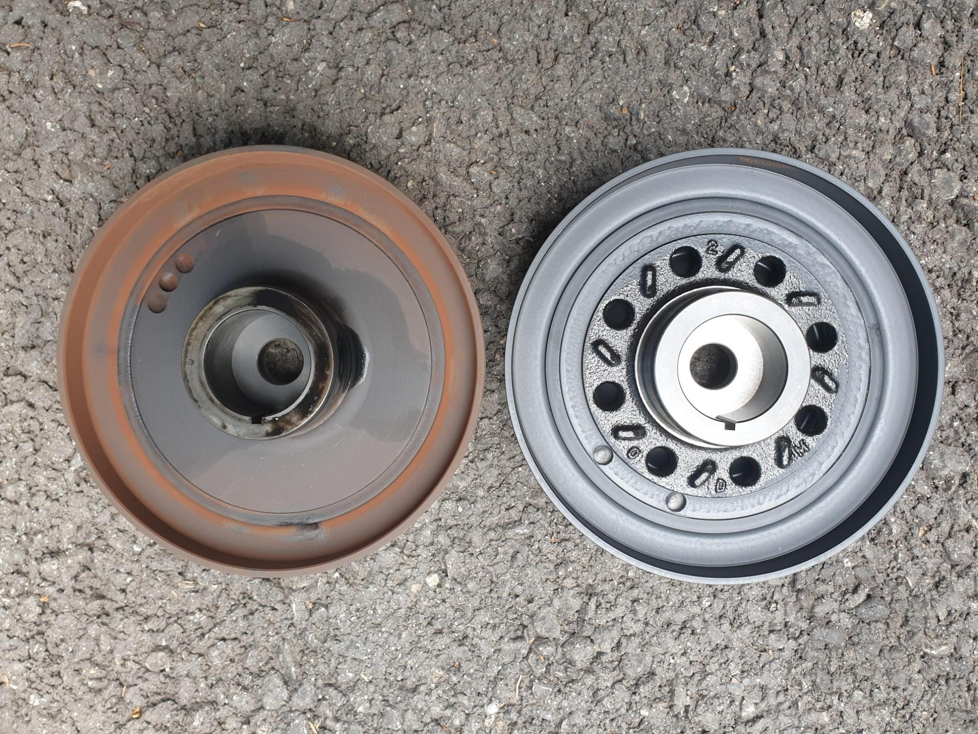 9. 댐퍼 풀리 탈거. 그냥 양손으로 3시/9시를 잡고 들썩들썩하면서 뽑아내면 쉽게 빠진다.